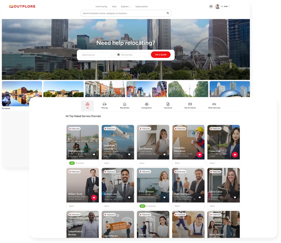 Relocating should feel like an exciting new chapter, not a feeling of uncertainty, and endless to-do lists. At Outplore, our mission is to put people back at the center of the moving experience. We connect you with trusted experts, real communities, and authentic local insights that make your transition smoother, safer, and more joyful.